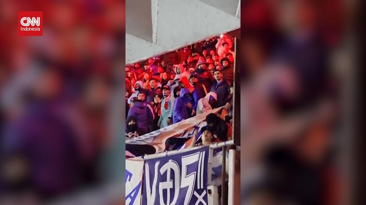 Rekaman video menunjukkan bentrokan antarsuporter di Liga Independiente dan Universidad de Chile di Avellaneda, Argentina, Rabu (20/8) malam waktu setempat.