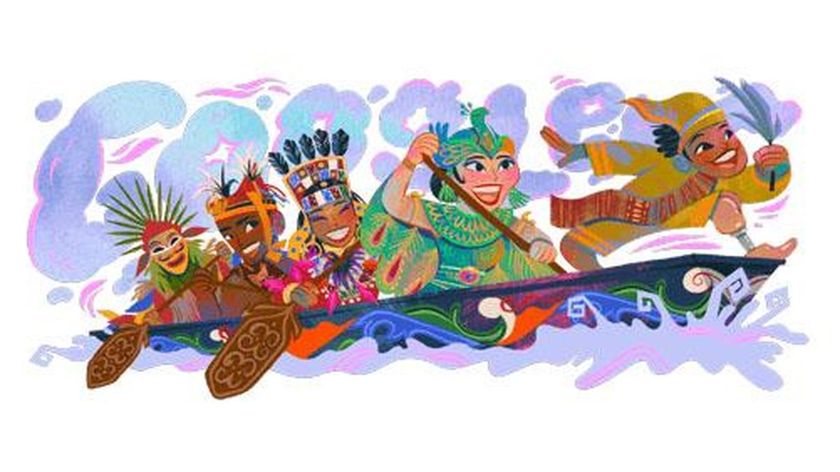 Hari ini, Google menampilkan sketsa lima orang di atas perahu. Empat orang mendayung dan satu orang di depan menari.