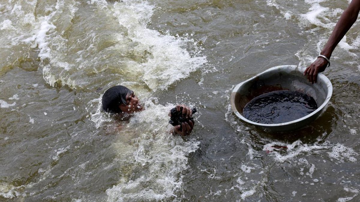 Para penyelam sungai India mempertaruhkan kesehatan mereka dalam mencari harta karun tersembunyi.