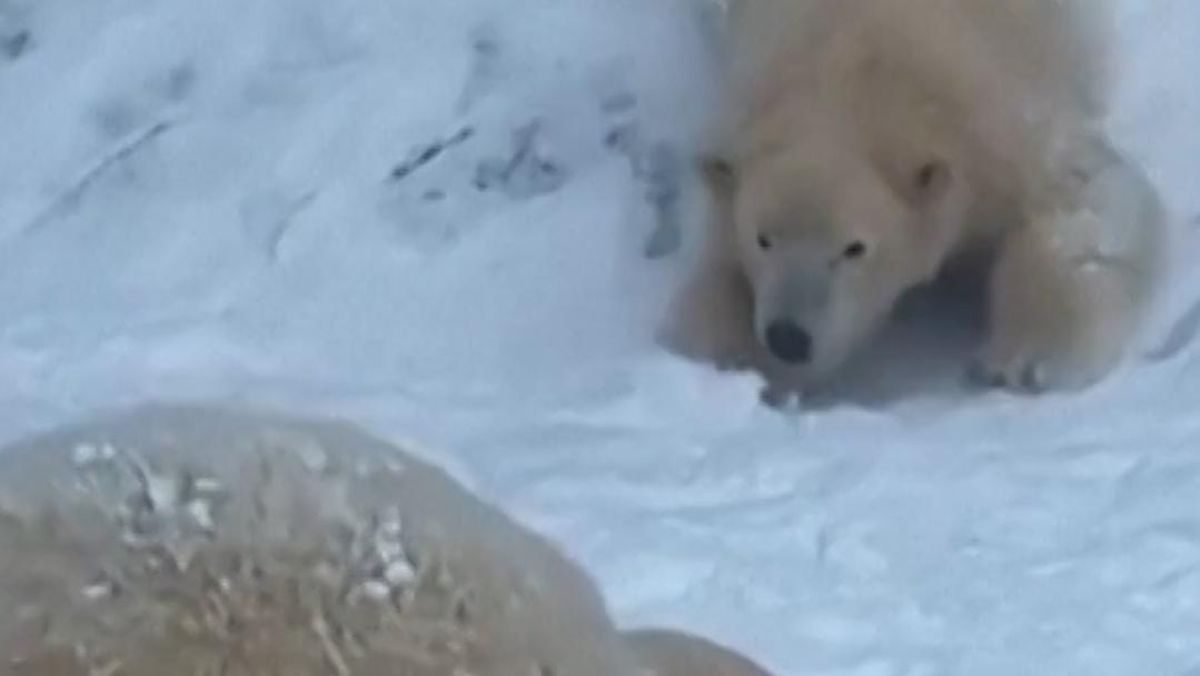 Momen ini dimanfaatkan dua beruang kutub di Kebun Binatang Nyíregyháza yang terlihat berguling dan bermain di tumpukan salju.
