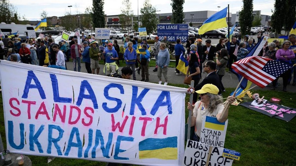Demonstran pendukung Ukraina menggelar aksi Keluhan Masyarakat di Anchorage, Alaska, pada Kamis (14/8) waktu setempat, jelang pertemuan Kepala Negara Amerika Serikat Donald Trump dan Kepala Negara Rusia Vladimir Putin.