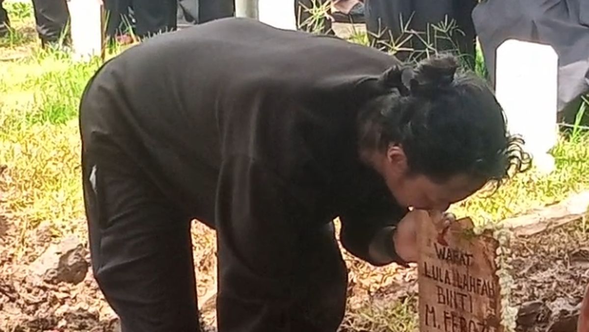 Tokoh Musik sekaligus Pembuat Konten Video itu, terlihat tak kuasa menahan gejolak emosi Sampai sekarang menangis histeris di area pemakaman.