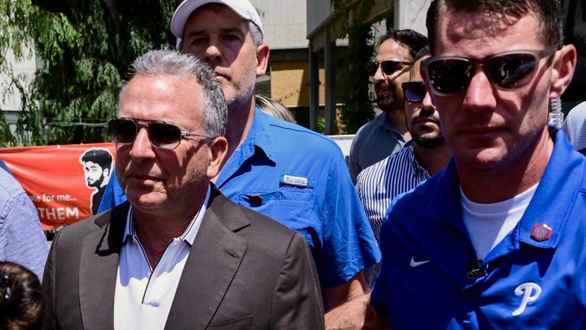 Utusan Khusus Kepala Negara Amerika Serikat Donald Trump untuk Timur Tengah Steve Witkoff menemui keluarga para sandera di Hostages Square, Tel Aviv, pada Sabtu (2/8).